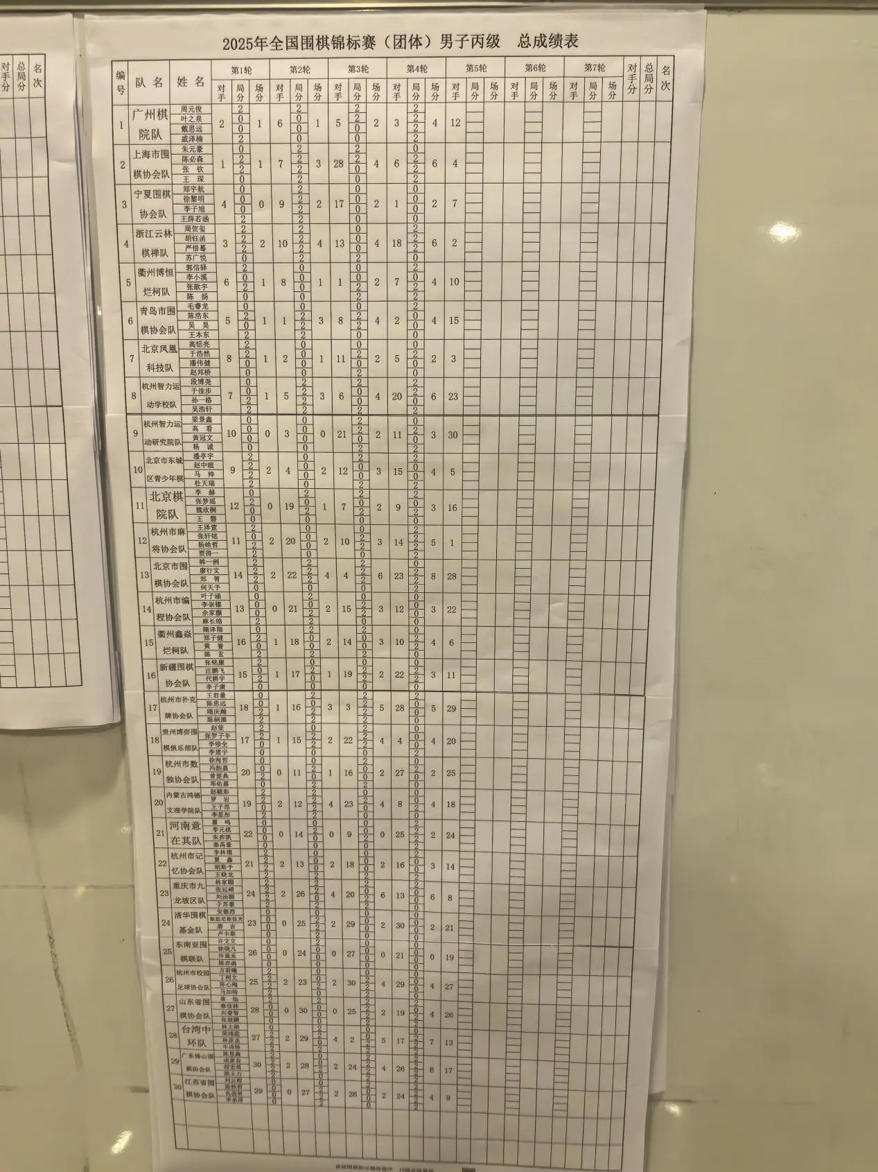 台湾中环队3比1胜杭州市扑克牌协会队后,积分达到7分,紧追北京市围棋协会队。下一轮两队将展开对冲。